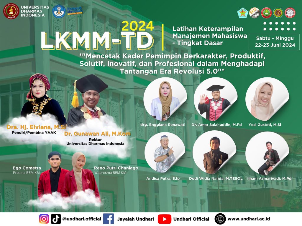 Wakil Rektor III UNDHARI, Dr. Amar Salahuddin, M.Pd., mengungkapkan, Kegiatan LKMM-TD ini bukan hanya untuk mengasah keterampilan manajemen, tetapi juga untuk membentuk karakter kepemimpinan yang solutif dan inovatif. “Kegiatan LKMM-TD UNDHARI 2024 ini akan menjadi menjadi momentum penting bagi mahasiswa UNDHARI untuk mengembangkan diri, mengasah keterampilan manajemen dan kepemimpinan, serta terus berprestasi dalam berbagai bidang. Melalui LKMM-TD 2024, UNDHARI berkomitmen untuk mencetak pemimpin masa depan yang berkualitas dan siap menghadapi era Revolusi 5.0.” Tegas Amar