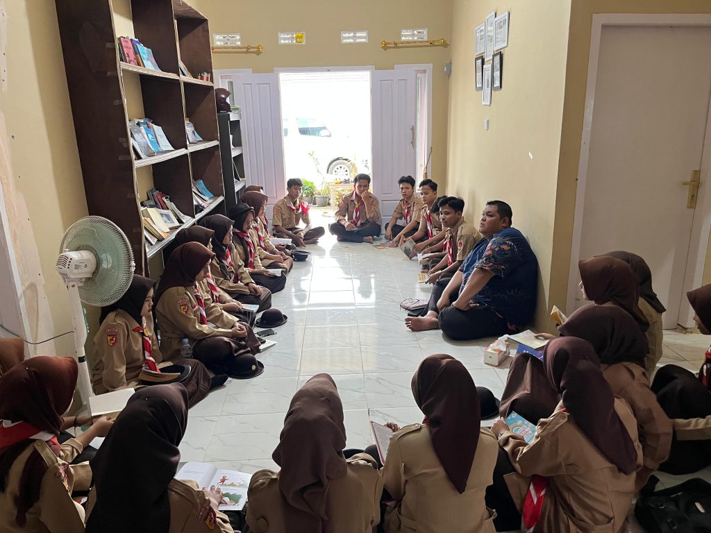 www.gemaundhari.com, Dharmasraya – Dalam rangka memperingati Hari Pramuka Sedunia, Gugus Depan (Gudep) Dharmasraya 04.029-04.030 yang berpangkalan di Universitas Dharmas Indonesia (UNDHARI) melalui Unit Kegiatan Mahasiswa (UKM) Racana Dara Jingga Pramuka Undhari menggelar aksi “Pramuka Undhari Peduli Literasi”. Kegiatan ini dilakukan dengan mengunjungi Rumah Baca Marenda, para anggota Pramuka Undhari membaca bersama, berdiskusi buku, serta membahas pentingnya literasi dalam kehidupan sehari-hari.