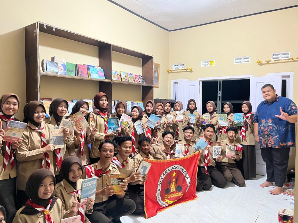 www.gemaundhari.com, Dharmasraya – Dalam rangka memperingati Hari Pramuka Sedunia, Gugus Depan (Gudep) Dharmasraya 04.029-04.030 yang berpangkalan di Universitas Dharmas Indonesia (UNDHARI) melalui Unit Kegiatan Mahasiswa (UKM) Racana Dara Jingga Pramuka Undhari menggelar aksi “Pramuka Undhari Peduli Literasi”. Kegiatan ini dilakukan dengan mengunjungi Rumah Baca Marenda, para anggota Pramuka Undhari membaca bersama, berdiskusi buku, serta membahas pentingnya literasi dalam kehidupan sehari-hari.