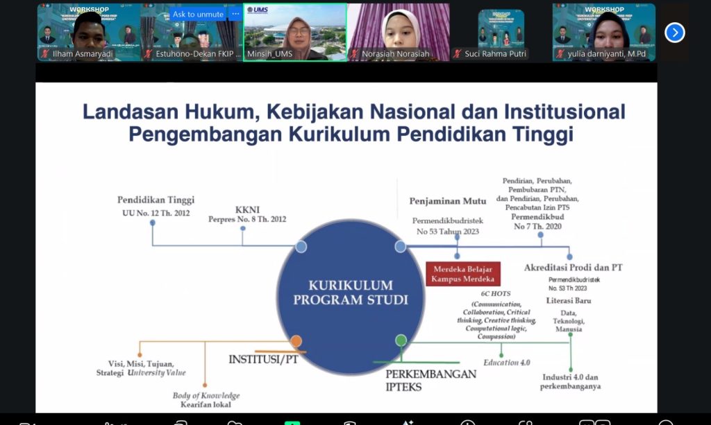Kegiatan ini menghadirkan pakar pendidikan nasional, Prof. Dr. Minsih, M.Pd, Asesor Lembaga Akreditasi Mandiri- Kependidikan (LAMDIK) sekaligus Kaprodi Magister Pendidikan Dasar Universitas Muhammadiyah Surakarta. Dalam pemaparannya, Prof. Minsih menguraikan strategi perancangan kurikulum OBE, penyelarasan Capaian Pembelajaran Lulusan (CPL), serta penguatan asesmen berbasis capaian pembelajaran yang menjadi kunci dalam peningkatan kualitas akademik.